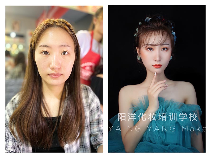 亦不可濃妝艷抹,而應(yīng)理性地采用輕描淡寫的手法,運(yùn)用較少量的化妝品和柔淡的彩妝色,突顯新娘的自然美。