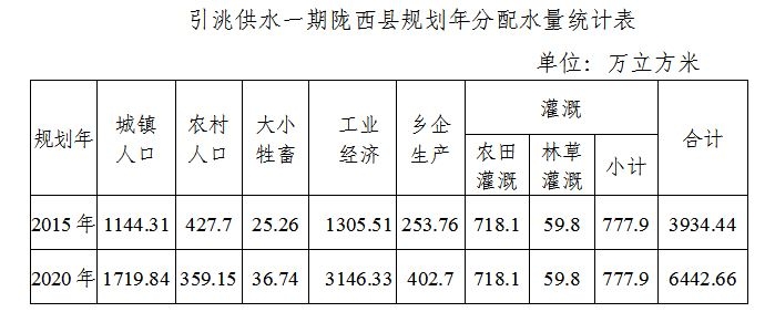 外調(diào)水資源主要分為兩部分,其一為漳隴農(nóng)村供水工程的外調(diào)水源,根據(jù)漳隴農(nóng)村供水工程初步設計報告每年計劃向隴西縣輸水166萬立方米,供水對象為隴西縣首陽鎮(zhèn)、碧巖鎮(zhèn)、菜子鎮(zhèn)、鞏昌鎮(zhèn)、文峰鎮(zhèn)的南部山區(qū)的部分農(nóng)村居民生產(chǎn)生活用水;其二為甘肅省引洮供水一期工程的外調(diào)水源,根據(jù)甘肅省水利廳關于《引洮供水一期定西市水資源綜合利用規(guī)劃》批復(甘水資源發(fā)〔2012〕777號),到2015年,引洮供水一期工程規(guī)劃向隴西縣分配總用水量,3934.44萬立方米,其中城鎮(zhèn)人口1144.31萬立方米、農(nóng)村人口427.7萬立方米、大小牲畜25.26萬立方米,工業(yè)經(jīng)濟1305.51萬立方米、鄉(xiāng)企生產(chǎn)253.76萬立方米、農(nóng)田灌溉718.10萬立方米、林草59.8萬立方米;2020年,引洮供水一期工程規(guī)劃向隴西縣分配總用水量,6442.66萬立方米,其中城鎮(zhèn)人口1719.84萬立方米、農(nóng)村人口359.15萬立方米、大小牲畜36.74萬立方米,工業(yè)經(jīng)濟3146.33萬立方米、鄉(xiāng)企生產(chǎn)402.70萬立方米、農(nóng)灌718.10萬立方米、林草59.8萬立方米。引洮供水一期規(guī)劃年分配水量詳見下表所示。規(guī)劃綱要_報告模板_工程資料