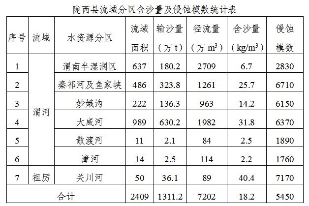隴西縣多年平均輸沙量1311.2萬噸,多年平均含沙量18.2千克/立方米,多年平均輸沙模數(shù)5450噸/平方公里。從河流來看,祖厲河輸沙量最大,魚家峽及秦祁河次之;從地區(qū)分布看,渭河北岸支流的侵蝕強度遠大于南岸支流,北部的大威河、秦祁河、魚家峽、妙鵝溝、跑龍溝等支流的平均侵蝕模數(shù)在6000噸/平方公里以上,南部的科陽河、西河等支流在3000噸/平方公里以內(nèi)。隴西縣各流域分區(qū)含沙量及侵蝕模數(shù)詳見下表所示。大牛工程師