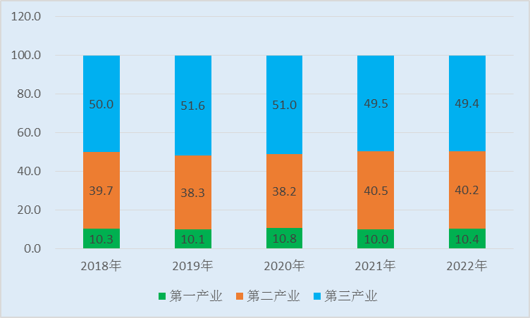 圖2 2018-2022年三次產業(yè)增加值占全省生產總值比重(%)