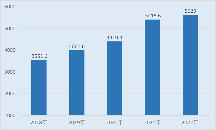 圖5 2018-2022年全省社會消費品零售總額(億元)