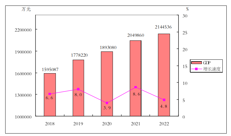 表1 ?2018-2022年地區(qū)生產總值及其增長速度
