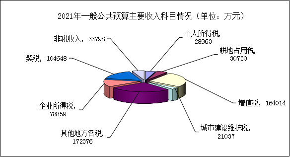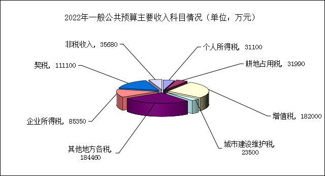 2022年財政總收入預(yù)期1043980萬元,比上年增長8.5%;其中一般公共預(yù)算收入685180萬元,比上年增長8%,主要收入科目情況如下圖: