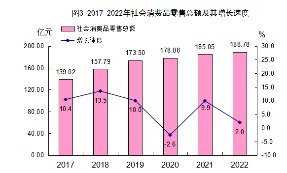 全年社會(huì)消費(fèi)品零售總額188.78億元,比上年增長(zhǎng)2.0%。其中,限額以上消費(fèi)品零售額33.96億元,增長(zhǎng)5.8%;限額以下消費(fèi)品零售額154.82億元,增長(zhǎng)1.2%。在限額以上批發(fā)和零售企業(yè)商品零售額(不含市局反饋企業(yè)數(shù)據(jù))中,石油及其制品類增長(zhǎng)2.8%,中西藥品類增長(zhǎng)28.1%,糧油食品類下降6.4%,服裝鞋帽、紡織品類下降0.3%,日用品類增長(zhǎng)33.1%,家用電器和音像器材類下降14.9%,家具類增長(zhǎng)9.6%,汽車類下降34.9%。全縣限額以上企業(yè)通過(guò)互聯(lián)網(wǎng)實(shí)現(xiàn)商品零售額7.49億元,比上年增長(zhǎng)65.7%。