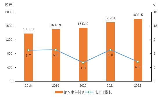 圖1 2018-2022年地區(qū)生產(chǎn)總值及增長速度