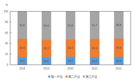 圖2 2018-2022年三次產(chǎn)業(yè)結(jié)構(gòu)