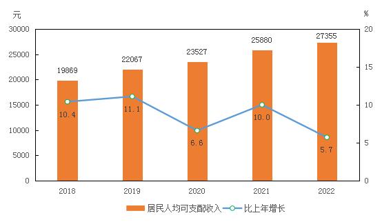 圖6 2018-2022年居民人均可支配收入及增長速度