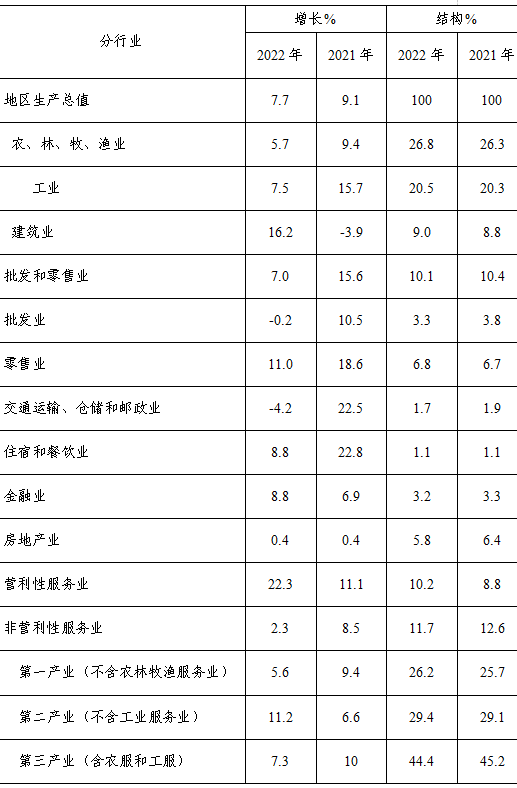 表1 ???????????????????????????????????????浦北縣2022年GDP構(gòu)成表