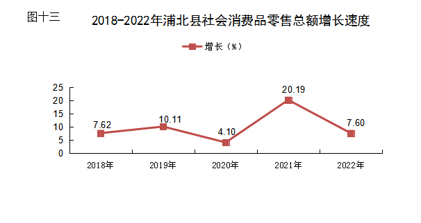 2022年全縣社會(huì)消費(fèi)品零售總額72.11億元,比上年增長(zhǎng)7.6%。分地域看,城鎮(zhèn)消費(fèi)品零售額64.69億元,同比增長(zhǎng)8.35%;鄉(xiāng)村消費(fèi)品零售額7.42億元,同比增長(zhǎng)1.7%。按消費(fèi)類型統(tǒng)計(jì),批發(fā)業(yè)商品銷售額16.68億元,同比增長(zhǎng)10.9%;零售業(yè)商品銷售額70.52億元,同比增長(zhǎng)16.3%;住宿業(yè)營(yíng)業(yè)額1.48億元,同比增長(zhǎng)17%;餐飲業(yè)營(yíng)業(yè)額8.58億元,同比增長(zhǎng)11.8%。