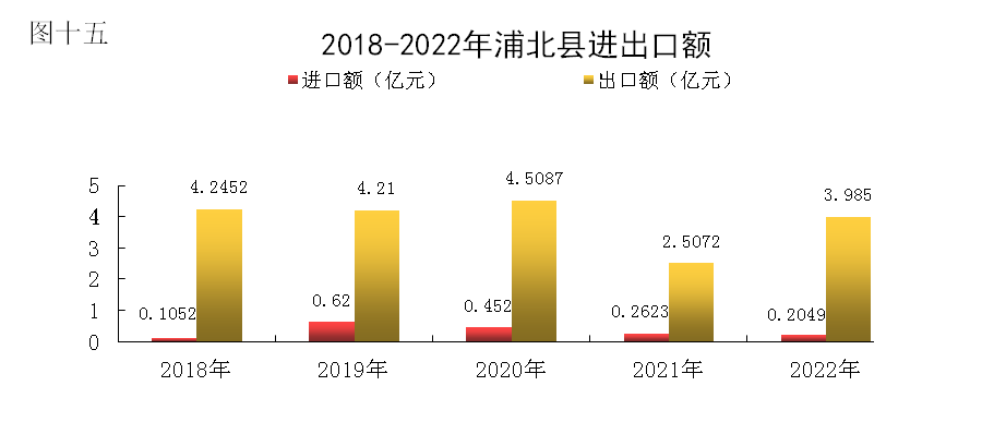 2022年浦北縣貨物進(jìn)出口總額4.1899億元,比上年增長(zhǎng)51.29%。其中,出口額3.985億元,增長(zhǎng)58.94%;進(jìn)口額0.2049億元,下降21.88%。進(jìn)出口順差(進(jìn)口小于出口) 3.78億元,比上年增加1.54億元。