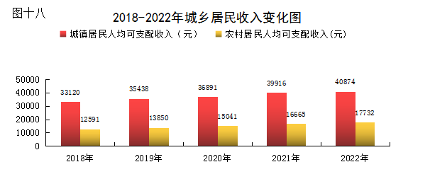 居民收入:2022年全縣居民人均可支配收入25257元,比上年名義增長(zhǎng)4.3%。按常住地分,城鎮(zhèn)居民人均可支配收入40874元,比上年名義增長(zhǎng)2.4%;農(nóng)村居民人均可支配收入17732元,比上年名義增長(zhǎng)6.4%。