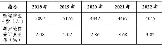 表6 ????????????????????????????????????????2018-2022年浦北縣就業(yè)情況