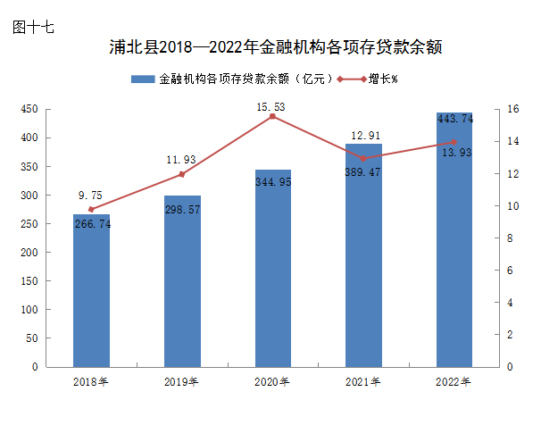 金融業(yè):2022年末,全縣全部金融機(jī)構(gòu)各項(xiàng)存貸款余額為443.74億元,同比增長(zhǎng)13.93%。其中,金融機(jī)構(gòu)各項(xiàng)存款余額為260.21億元,同比增長(zhǎng)11.52%;金融機(jī)構(gòu)各項(xiàng)貸款余額183.53億元,增長(zhǎng)17.53%。住戶存款余額為226.76億元,增長(zhǎng)11.14%。