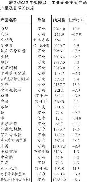 從主要產(chǎn)品產(chǎn)量看,原煤產(chǎn)量增長15.9%,發(fā)電量增長6.9%,天然氣增長6.1%,彩色電視機(jī)增長17.0%,飼料增長13.3%,電力電纜增長11.5%,汽車增長6.5%,農(nóng)用氮磷鉀化學(xué)肥料增長6.4%,啤酒增長4.1%,平板玻璃增長1.3%。全年規(guī)模以上工業(yè)企業(yè)產(chǎn)銷率為96.4%。