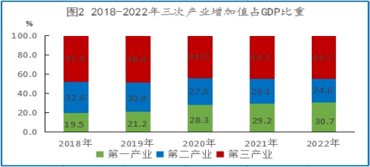 注:2021年三次產(chǎn)業(yè)結(jié)構(gòu)為最終核實(shí)數(shù),2022年為初步核算數(shù)。