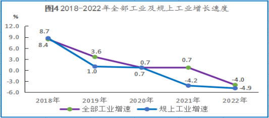 全年工業(yè)增加值15.46億元,比上年下降4.0%。其中,規(guī)模以上工業(yè)增加值下降4.9%。