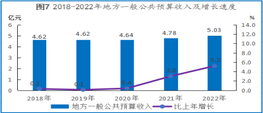 全年地方一般公共預(yù)算收入5.03億元,比上年增長(zhǎng)5.2%。其中,稅收收入2.44億元,增長(zhǎng)10.4%。一般公共預(yù)算支出58.95億元,增長(zhǎng)6.9%。