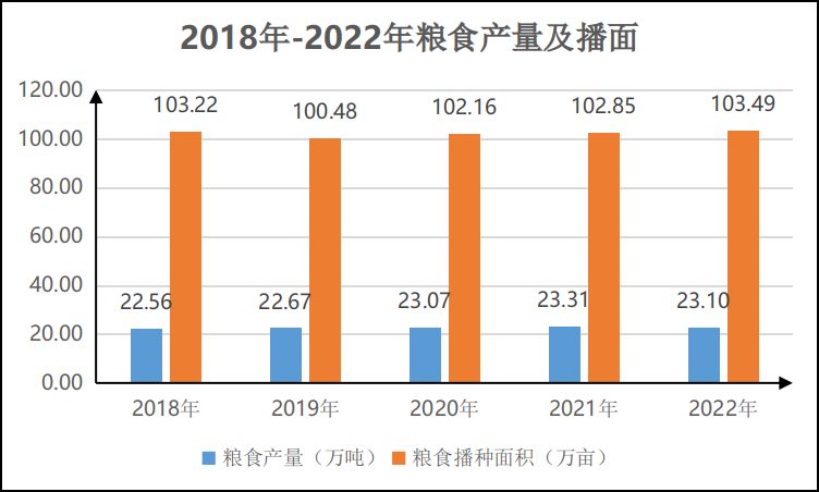 全年糧食產(chǎn)量23.10萬噸,同比下降0.88%;油菜籽產(chǎn)量1.8萬噸,下降0.03%;蔬菜及食用菌產(chǎn)量達(dá)44.42萬噸,增長(zhǎng)0.1%。瓜果產(chǎn)量達(dá)0.1萬噸,增長(zhǎng)7.3%。