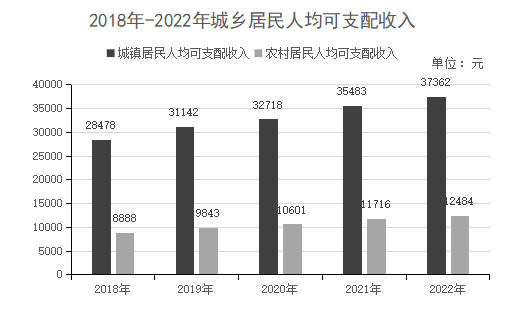 城鎮(zhèn)居民人均可支配收入37362元,比上年增長5.3%;農(nóng)村居民人均可支配收入12484元,比上年增長6.6%。