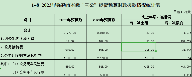 1-8 彌勒市市本級“三公”經(jīng)費(fèi)預(yù)算財政撥款情況統(tǒng)計表 |
