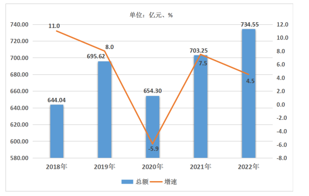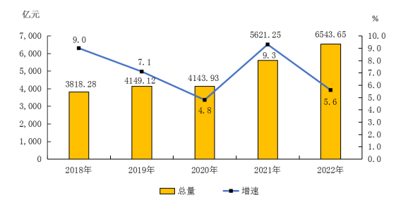 2018年-2022年生產(chǎn)總值總量及增速