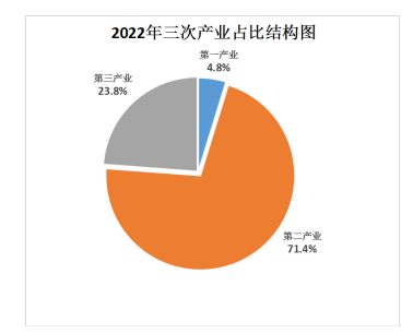 初步核算,2022年全市實(shí)現(xiàn)地區(qū)生產(chǎn)總值6543.65億元,比上年增長(zhǎng)5.6%,其中第一產(chǎn)業(yè)增加值312.25億元,增長(zhǎng)4.6%;第二產(chǎn)業(yè)增加值4673.49億元,增長(zhǎng)5.7%;第三產(chǎn)業(yè)增加值1557.91億元,增長(zhǎng)5.8%。一、二、三產(chǎn)業(yè)增加值占生產(chǎn)總值的比重分別為4.8%、71.4%和23.8%。按常住人口計(jì)算,人均生產(chǎn)總值180816元,約合25962美元。