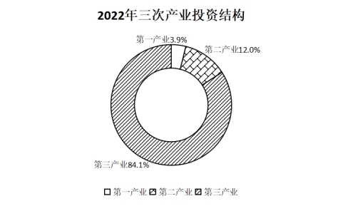 固定資產(chǎn)投資同比下降8.1%,按三次產(chǎn)業(yè)分,第一產(chǎn)業(yè)投資同比增長142.2%,第二產(chǎn)業(yè)投資同比下降22.6%,第三產(chǎn)業(yè)投資同比下降7.8%。第一、第二和第三產(chǎn)業(yè)投資占比分別為3.9%、12.0%和84.1%。