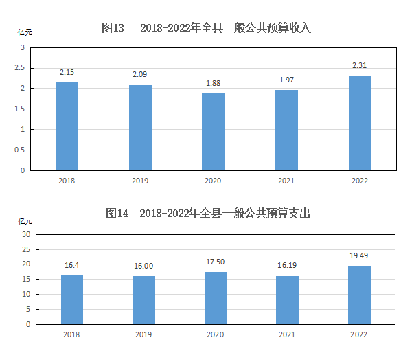 財(cái)政:全縣一般公共預(yù)算收入2.31億元,增長17.2%,其中稅收收入1.08億元,增長4%。一般公共財(cái)政預(yù)算支出19.49億元,增長20.4%。
