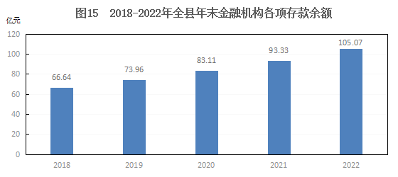 金融:2022年末金融機(jī)構(gòu)各項(xiàng)存款余額105.07億元,增長12.58%,其中:城鄉(xiāng)居民儲(chǔ)蓄存款余額88.08億元,增長19.92%。金融機(jī)構(gòu)各項(xiàng)貸款余額78.43億元,增長11.67%,其中:城鄉(xiāng)居民貸款余額31.15億元,下降3.27%。金融機(jī)構(gòu)存貸比74.66%,下降0.64個(gè)百分點(diǎn)。