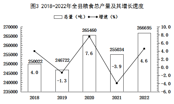 全年全縣糧食產(chǎn)量266694.99噸,增長4.6%。其中,夏糧125606.42噸,增長0.9%;秋糧141088.57噸,增長8.1%。全年油料產(chǎn)量230.32噸,增長10.4%。全年蔬菜產(chǎn)量30151.8噸,增長9.0%。全年水果產(chǎn)量130826.1噸,增長1.2%,其中園林水果產(chǎn)量130528.9噸,增長1.4%。