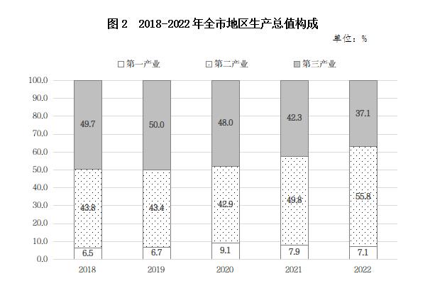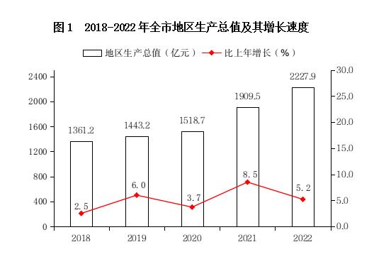 初步核算,全年全市地區(qū)生產(chǎn)總值2227.9億元,按不變價(jià)格計(jì)算,比上年增長5.2%。其中,第一產(chǎn)業(yè)增加值158.0億元,比上年增長5.2%,占生產(chǎn)總值的比重為7.1%;第二產(chǎn)業(yè)增加值1243.0億元,增長7.0%,占生產(chǎn)總值的比重為55.8%;第三產(chǎn)業(yè)增加值826.8億元,增長3.4%,占生產(chǎn)總值的比重為37.1%。