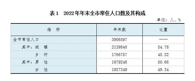 年末全市常住人口390.66萬人,比上年末減少0.58萬人。其中,城鎮(zhèn)常住人口213.98萬人,占常住人口比重為54.78%,比上年末提高0.63個(gè)百分點(diǎn)。全年全市出生人口2.48萬人,出生率為6.35‰;死亡人口3.14萬人,死亡率為8.02‰;自然增長率為-1.67‰。