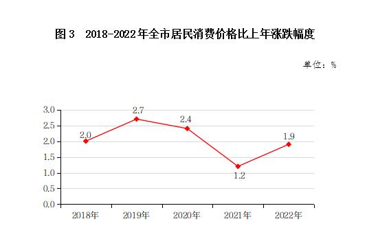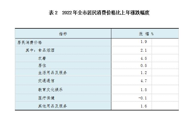 全市居民消費(fèi)價(jià)格比上年上漲1.9%,其中,食品煙酒類價(jià)格上漲2.1%。