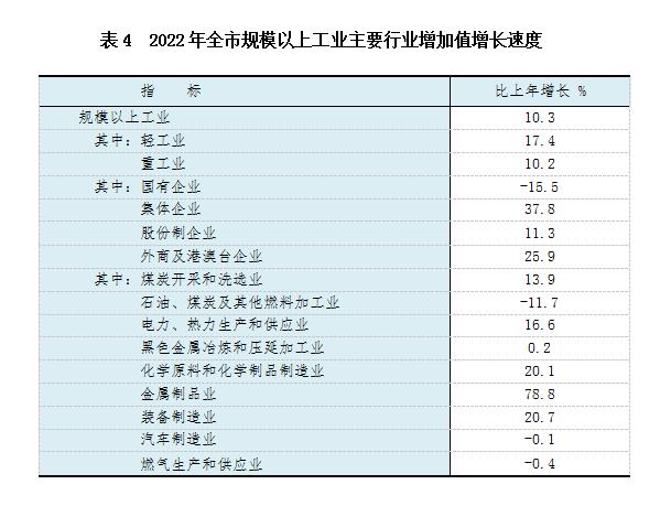 年末全市規(guī)模以上工業(yè)企業(yè)636家。全年全市規(guī)模以上工業(yè)增加值比上年增長10.3%。其中,采礦業(yè)增長13.8%,制造業(yè)增長0.5%,電力、熱力、燃?xì)饧八a(chǎn)和供應(yīng)業(yè)增長11.9%。