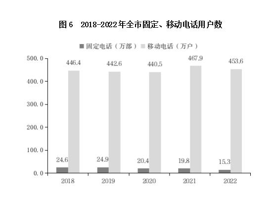 全年全市完成郵電業(yè)務(wù)總量42.4億元,比上年下降2.8%,其中,郵政業(yè)務(wù)總量4.5億元,增長2.6%;電信業(yè)務(wù)總量37.9億元,下降3.4%。年末全市固定電話15.3萬部,比上年下降22.7%,移動電話453.6萬戶,下降3.1%,移動電話普及率115.9部/百人。年末4G基站總數(shù)16243個(gè),比上年增長0.9%;5G基站總數(shù)6533個(gè),增長99.5%。全市寬帶接入用戶155.1萬戶,比上年增長10.8%。