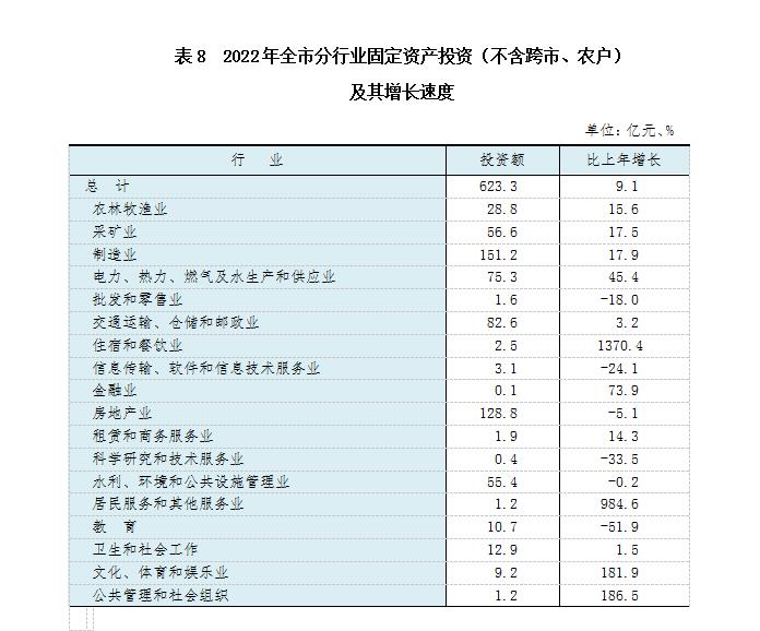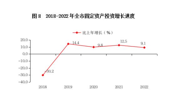 全年全市固定資產(chǎn)投資(不含跨市、農(nóng)戶)比上年增長9.1%。