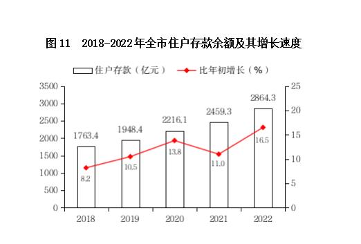 年末住戶存款2864.3億元,比年初增長16.5%。