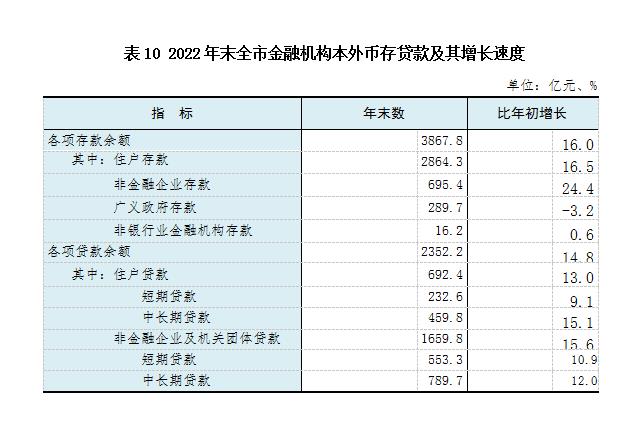 年末全市金融機(jī)構(gòu)本外幣各項(xiàng)存款余額3867.8億元,比年初增加534.2億元、增長16.0%。各項(xiàng)貸款余額2352.2億元,比年初增加303.9億元、增長14.8%。