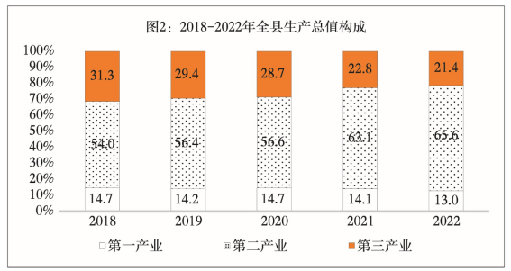初步核算,全年全縣實(shí)現(xiàn)生產(chǎn)總值181.5億元,按可比價(jià)計(jì)算,比上年增長(zhǎng)5.8%。其中第一產(chǎn)業(yè)增加值完成23.5億元,增長(zhǎng)4.7%;第二產(chǎn)業(yè)增加值完成119.1億元,增長(zhǎng)4.9%;第三產(chǎn)業(yè)增加值完成38.9億元,增長(zhǎng)8.4%。三次產(chǎn)業(yè)結(jié)構(gòu)比為13.0:65.6:21.4。