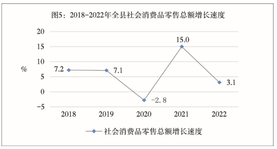 全年全縣社會(huì)消費(fèi)品零售總額完成33.6億元,比上年增長(zhǎng)3.1%。其中商品零售30.7億元,增長(zhǎng)3.0%。按經(jīng)營(yíng)地統(tǒng)計(jì),城鎮(zhèn)消費(fèi)品零售額26.9億元,增長(zhǎng)3.0%;鄉(xiāng)村消費(fèi)品零售額6.7億元,增長(zhǎng)6.4%。