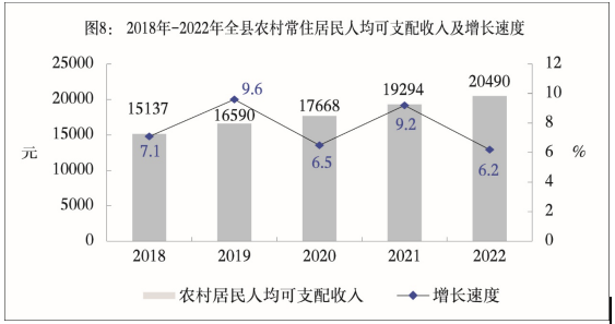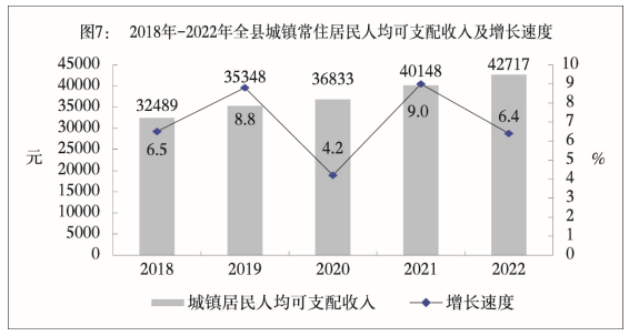 全年全縣居民人均可支配收入達(dá)到28349元,比上年增長(zhǎng)6.4%。按常住地分,城鎮(zhèn)常住居民人均可支配收入42717元,增長(zhǎng)6.4%;農(nóng)村常住居民人均可支配收入20490元,增長(zhǎng)6.2%。