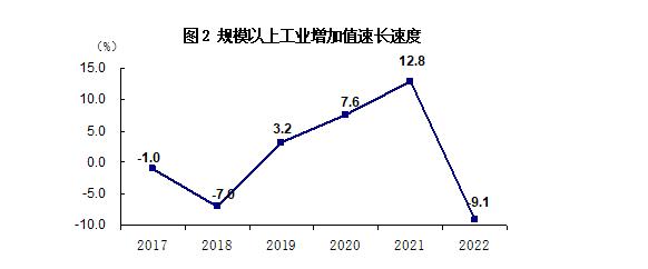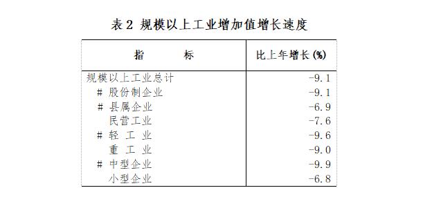 分經(jīng)濟(jì)類型看,股份制企業(yè)增加值下降9.1%。分門類看,制造業(yè)下降9.0%,電力、熱力、燃?xì)饧八a(chǎn)和供應(yīng)業(yè)下降9.4%。