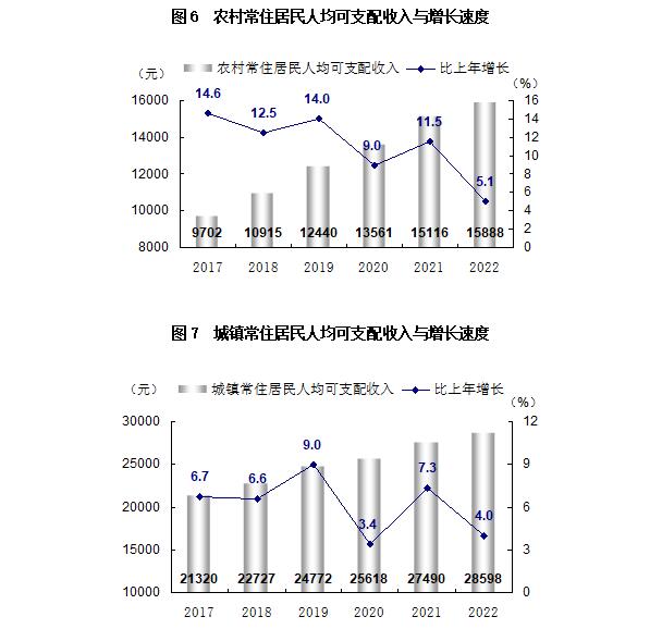 全年城鎮(zhèn)常住居民人均可支配收入28598元,比上年增長4.0%;農(nóng)村常住居民人均可支配收入15888元,增長5.1%。城鎮(zhèn)居民人均消費性支出20865元,下降2.9%,城鎮(zhèn)居民恩格爾系數(shù)32.7%;農(nóng)村居民人均生活消費支出10129元,下降3.9%,農(nóng)村居民恩格爾系數(shù)33.8%。