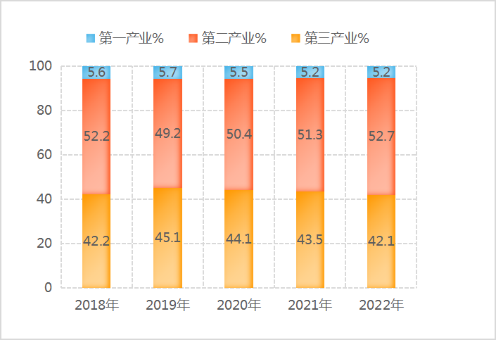 圖2?2018-2022年三次產(chǎn)業(yè)結(jié)構(gòu)