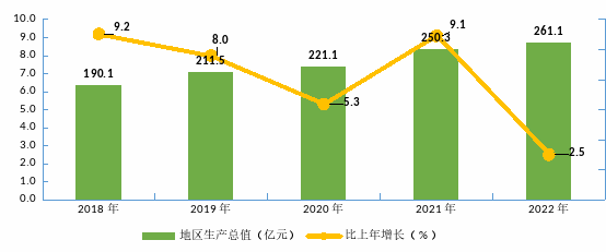 圖1 2018年—2022年地區(qū)生產(chǎn)總值及增速
