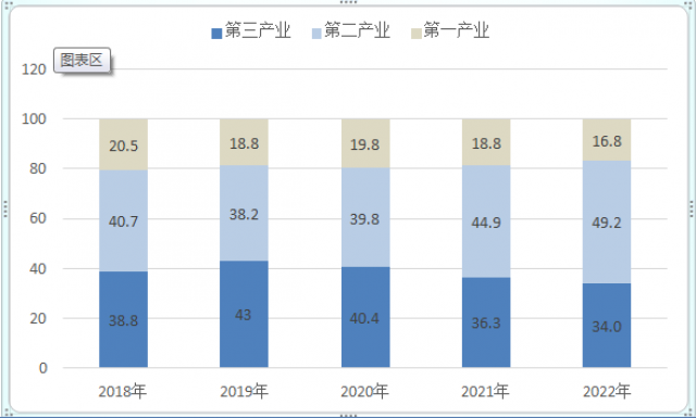 圖2:2018年-2022年三次產(chǎn)業(yè)增加值占GDP的比重