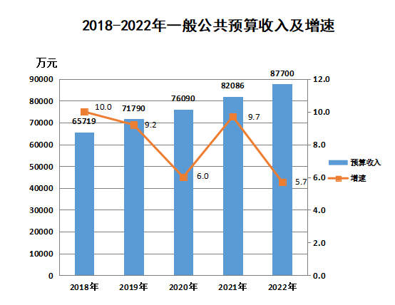 全年地方公共財(cái)政預(yù)算收入87700萬(wàn)元,增長(zhǎng)5.7%,其中,稅收收入58200萬(wàn)元,增長(zhǎng)5.4%,稅收占比達(dá)66.4%,公共預(yù)算支出460500萬(wàn)元,同比增長(zhǎng)-5.0%。