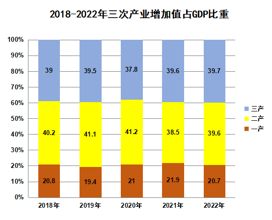 初步核算,2022年全年生產(chǎn)總值實(shí)現(xiàn)2693488萬(wàn)元,比上年增長(zhǎng)4.2%,增速位居全市第五。其中,第一產(chǎn)業(yè)增加值556612萬(wàn)元,增長(zhǎng)4.2%;第二產(chǎn)業(yè)增加值1067385萬(wàn)元,增長(zhǎng)7.0%;第三產(chǎn)業(yè)增加值1069491萬(wàn)元,增長(zhǎng)1.4%。三次產(chǎn)業(yè)結(jié)構(gòu)為20.7:39.6:39.7,一二三產(chǎn)對(duì)GDP增長(zhǎng)的貢獻(xiàn)率依次為22.1%、64.2%、13.7%,分別拉動(dòng)GDP增長(zhǎng)0.92、2.67、0.57個(gè)百分點(diǎn)。