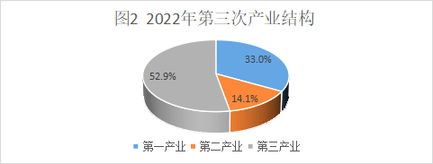 第一、二、三產(chǎn)業(yè)增加值占地區(qū)生產(chǎn)總值的比重分別為33%、14.1%和52.9%,與2021年相比,分別提高1.7、-4.1、2.4個(gè)百分點(diǎn)。按常住人口計(jì)算,全年人均地區(qū)生產(chǎn)總值28526元,比上年增長(zhǎng)1.2%。