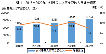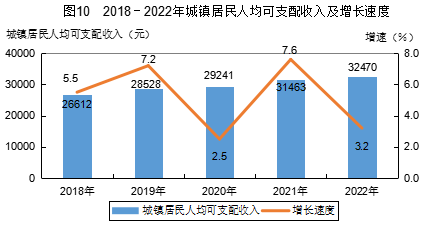 全年居民人均可支配收入21343元,比上年增加1038元,增長(zhǎng)5.1%。按常住地分,城鎮(zhèn)居民人均可支配收入32470元,比上年增加1007元,增長(zhǎng)3.2%;農(nóng)村居民人均可支配收入15703元,比上年增加1055元,增長(zhǎng)7.2%。城鄉(xiāng)居民人均收入比為2.07:1,比上年縮小0.08。